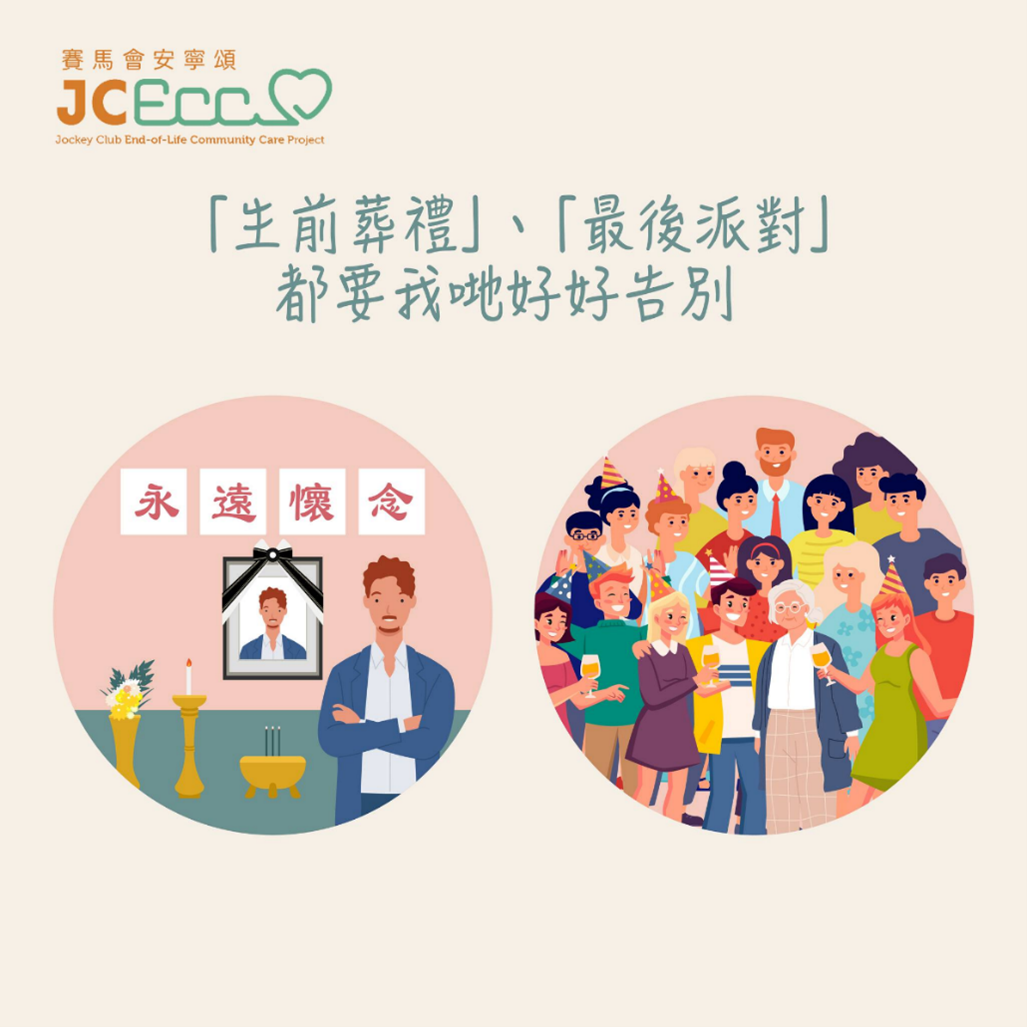 晚期病人去到最後階段會受病情影響,或需不時進出醫院,或需長時間臥床休息,甚至有部份晚期病人可能已經不能夠表達自己的需要。有人會在告別自己生命之前,安排「生前葬禮」,亦有人會舉辦「最後派對」,邀請家人、朋友出席,去回顧自己人生、同親友的生活點滴,開心、輕鬆地好好道別。 …