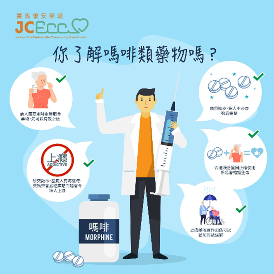 晚期病人可能因為病情而經歷不同的疼痛,例如骨痛、神經痛等。不少病人同家人對於使用嗎啡類藥物存有誤解,又擔心藥物會有副作用,因而抗拒使用。結果病人強行忍痛,承受住不必要的痛楚 ,病人可能會感到疲累、抑鬱、憤怒、孤獨等,亦會嚴重影響日常生活,例如無胃口進食、睡不好等等。其實只要適當地使用嗎啡類藥物,是可以 …