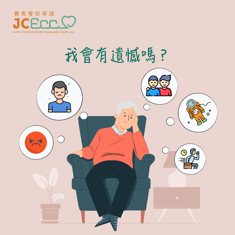 隨著親人逝去,除了悲傷外,照顧者及家人可能有好多懊悔和遺憾,例如: • 後悔未有察覺他身體不適,及早就醫;自責沒有為他選擇更有效的治療,以致未能扭轉病情;後悔在他生前沒有多加陪伴、照顧,沒有足夠的耐心去開解他,未能減輕他身心的痛苦… • 遺憾沒有在他有生之年,修補關係,冰釋前嫌;遺憾未能成全他的願望;遺憾沒有遵守對他的諾言… 但凡事豈能盡如人意?死亡的來臨就是 …