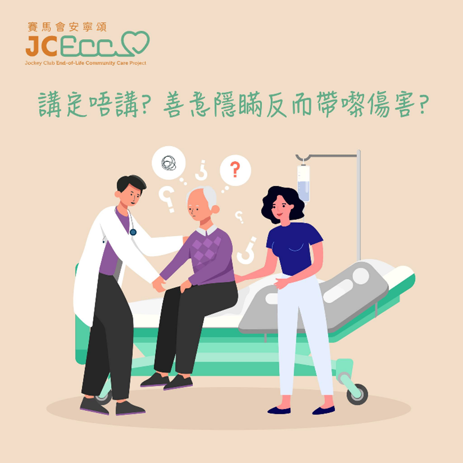 晚期病人同家人一起面對疾病、死亡的時候,有時可能會出於愛同保護而做出隱瞞的行為,但這一份善意又可能會為大家帶來痛苦、傷害,甚至造成遺憾。以下想與大家分享幾個病人同家人之間的善意隱瞞例子: …